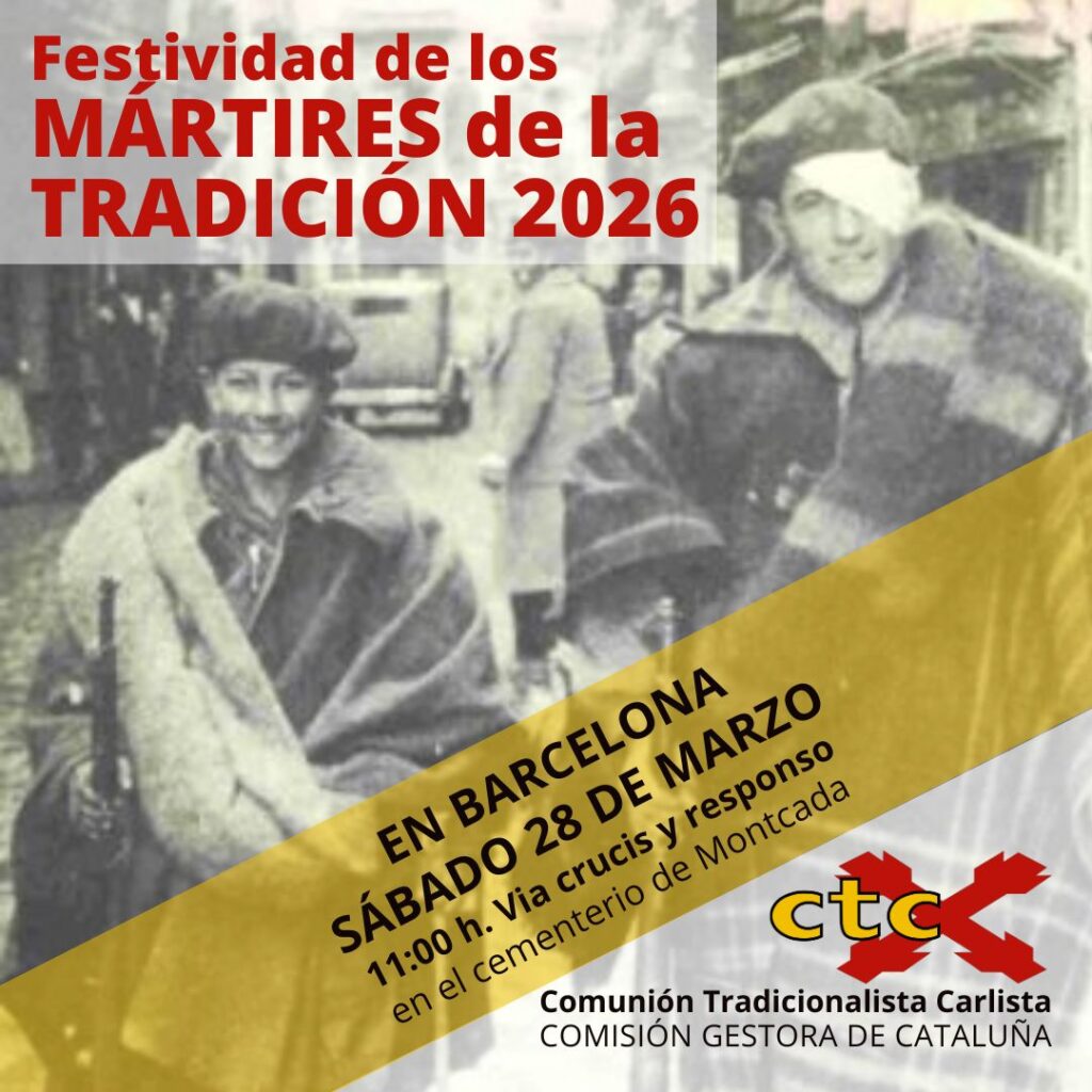 Festivitat dels Màrtirs de la Tradició 2026. Publicada el març 9, 2026març 9, 2026 El proper dissabte dia 28 de març Via Crucis i Respons a Montcada a les 11.00 hores. Somi-hi tots !!!